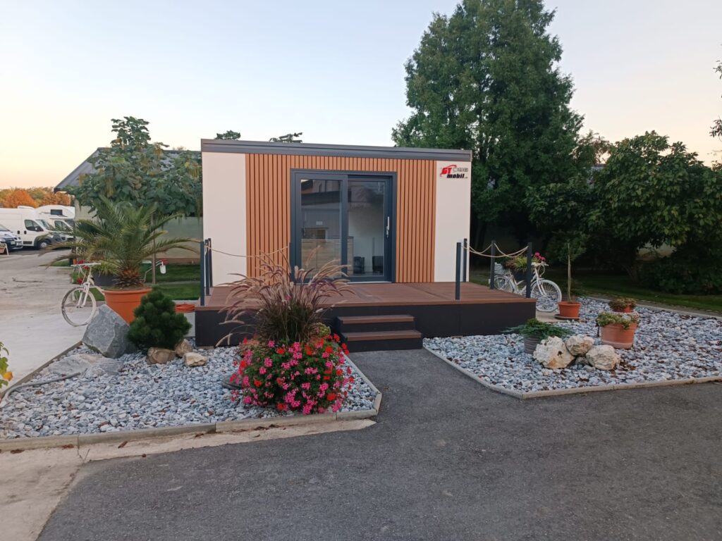Izdelane so po sistemu skeletne gradnje hiš, z velikimi panoramskimi okni in vrati s senčili in komarniki, ki dajejo hiški modern izgled. Prednost naših hišic je ravno v skeletni gradnji, kar pomeni, da so tla iz KVH profilov in niso del podvozja. Pocinkano podvozje je vijačeno na skeletno konstrukcijo, kar omogoča veliko stabilnost in trdnost hiške. Hiške so primerne za vroče morske temperature in za hladne zimske dni, saj so zelo dobro izolativne.